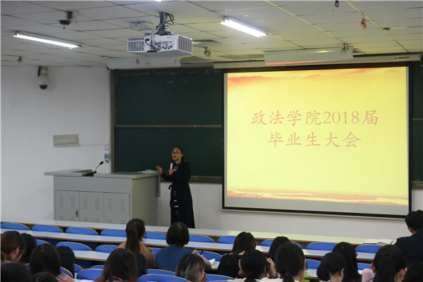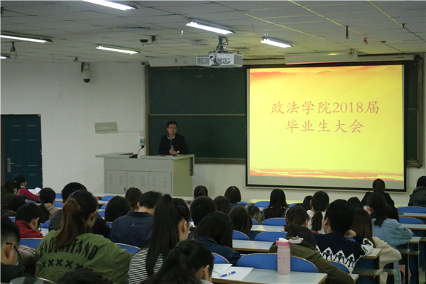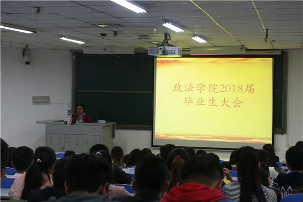 为了帮助毕业生认清就业形势,引导毕业生顺利就业,政法学院于10月12日下午2:30在三教楼109教室召开了2018届毕业生大会,政法学院党总支副书记金亮、分团委书记张宏英、学工办副主任刘栩静、负责就业工作的匡竞老师及2018届全体毕业生参加了此次大会。