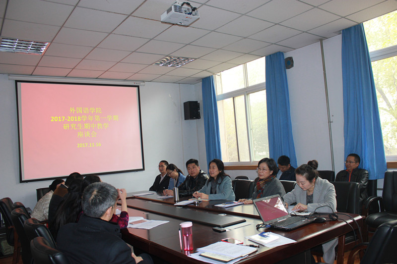 外国语学院于2017年11月16号下午在东二楼306召开了本学期期中研究生教学教师座谈会。学院期中研究生教学检查小组成员、硕导以及研究生任课教师参加了本次座谈会,会议由边铀铀副院长主持。