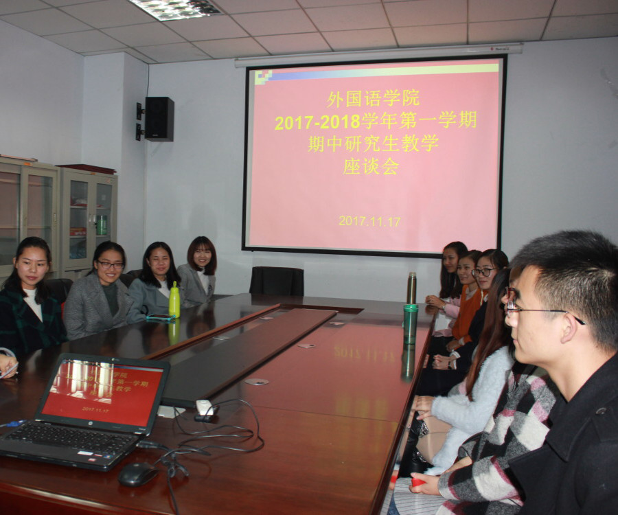 外国语学院于2017年11月17号下午在东二楼306召开了本学期期中研究生座谈会。学院2016级国际商务英语和2017级翻译硕士全体研究生参加了本次座谈会,会议由边铀铀副院长主持。
