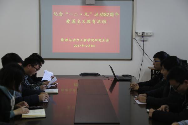 为了弘扬爱国主义精神,缅怀革命先烈,激发爱国主义热情,引导学生不忘初心,牢记使命,坚定不移的跟党走,12月8日下午14:30,能源与动力工程学院研究生会在工程实训中心楼407会议室举行了纪念一二·九运动活动,党支部书记李俊丰老师及全体研究生参加了此次活动。