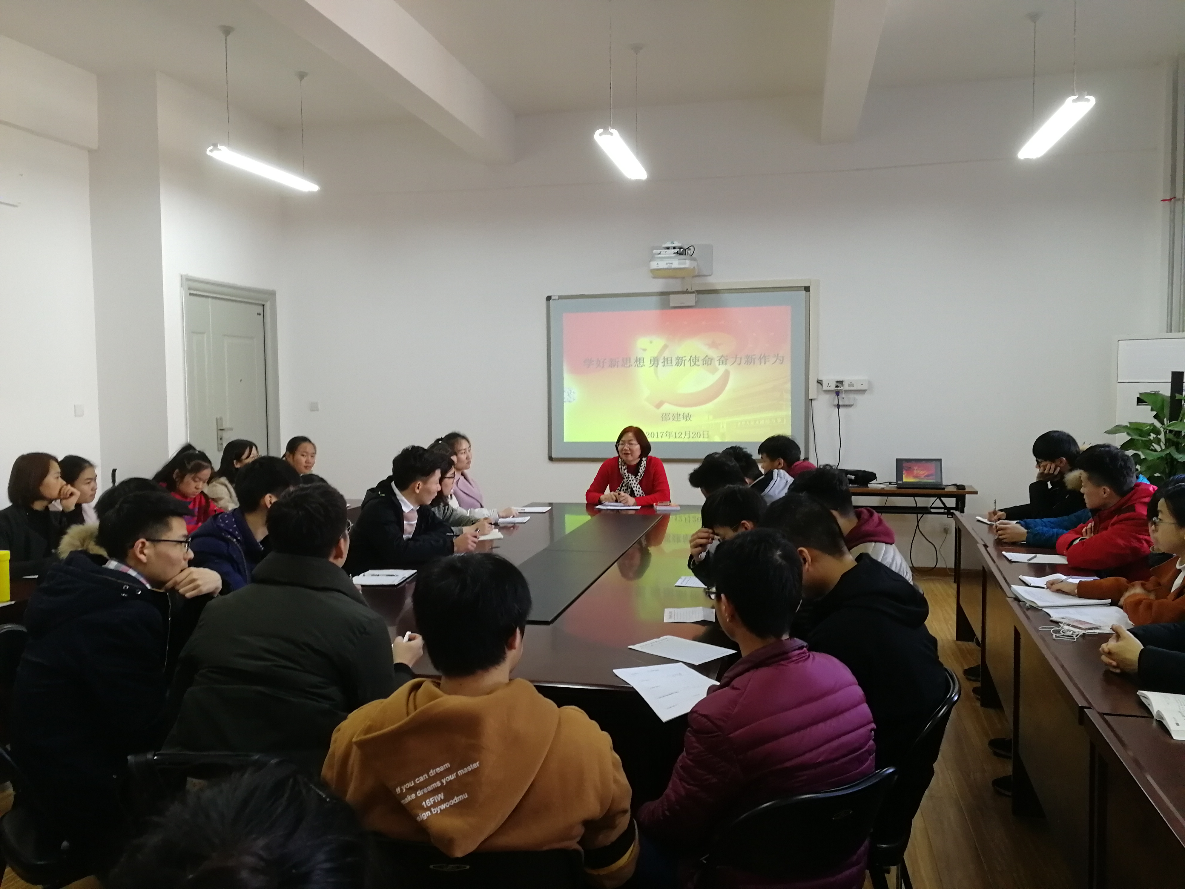 12月20日中午,能源与动力工程学院党总支书记邵建敏在学院会议室407为学生党员讲了一堂题为“学好新思想 勇担新使命 奋力新作为”的思想政治理论课。