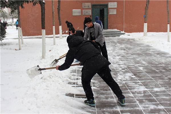 1月4日,新年的第一场大雪让轻院的美丽校园披上盛装,厚厚的白雪覆盖了校园,伴随着凛冽的寒风,气温骤降,同时也给全院师生带来安全隐患,给校园道路交通带来诸多不便,扫雪任务迫在眉睫。政法学院学生干部志愿者拿起工具,对我院交通主要干道的积雪进行了及时清扫。