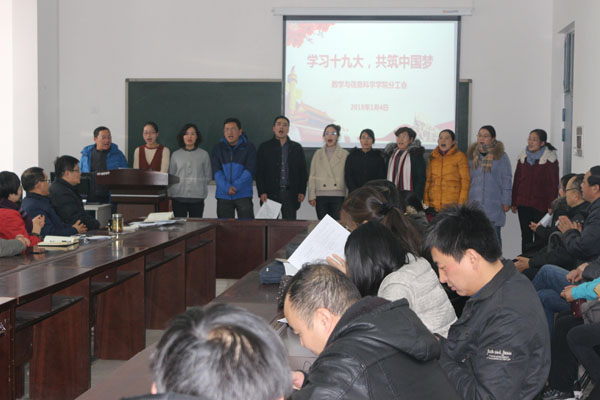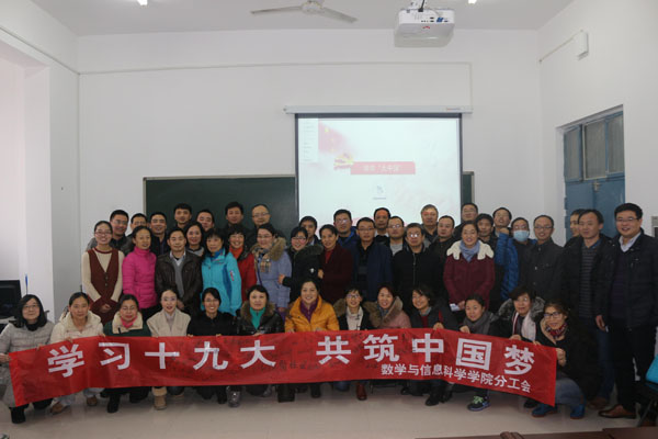 为深入学习贯彻党的十九大精神和习近平总书记系列重要讲话精神,丰富教职工文化生活,聚焦立德树人,1月4日下午,数学与信息科学学院分工会在会议室310成功举办以“学习十九大 共筑中国梦”为主题的活动。学院全体教职工参加了此次活动。
