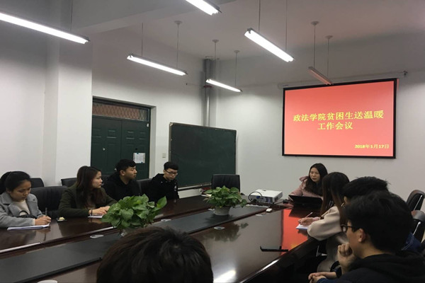 为进一步落实国家对家庭经济困难学生的资助政策,将学校、学院对家庭经济困难学生的深切关怀落到实处,政法学院于2018年1月17日下午6:00召开困难生送温暖工作会议,学工办刘栩静老师、困难生代表及学生干部参加了此次会议。