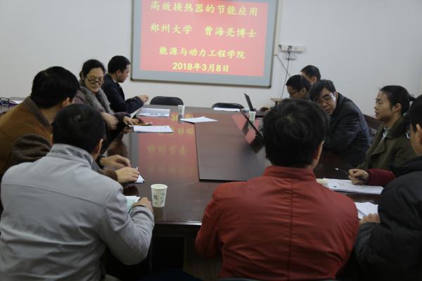 2018年3月8日,应能源与动力工程学院邀请,郑州大学曹海亮博士来我校进行学术交流,并对我院国家自然科学基金项目申报进行了论证辅导。能源与动力工程学院邵建敏书记、吴学红副院长和全体申报国家自然科学基金的老师参加了本次学术交流。