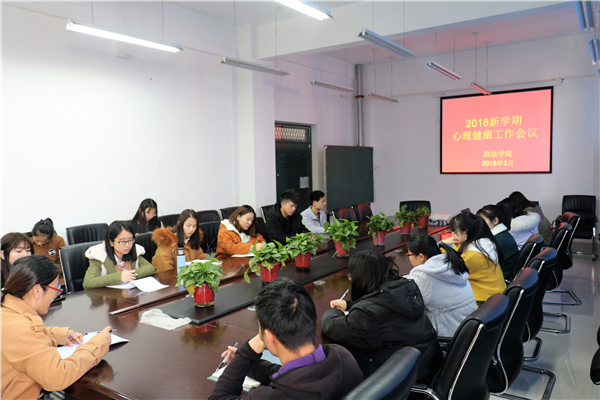 政法学院于3月8日中午12点在政法楼212会议室召开了2018年新学期心理健康工作会议。政法学院心理部全体成员及各班心理健康委员参加了此次会议。会议由匡竞老师主持。