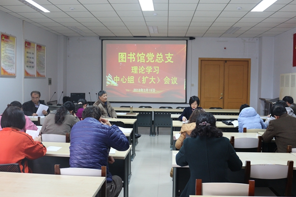 3月19日下午,图书馆党总支在东风校区图书馆六楼报告厅召开理论学习中心组(扩大)会议,全体馆领导、各支部书记及部室主任参加了会议。会议由总支书记蔡丽萍主持。