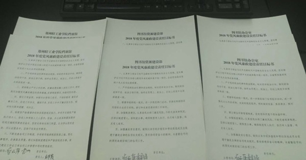 会后,图书馆、档案馆涉及到资源采购、经费使用及学籍证明开具的相关部门分别签订了廉政责任书。