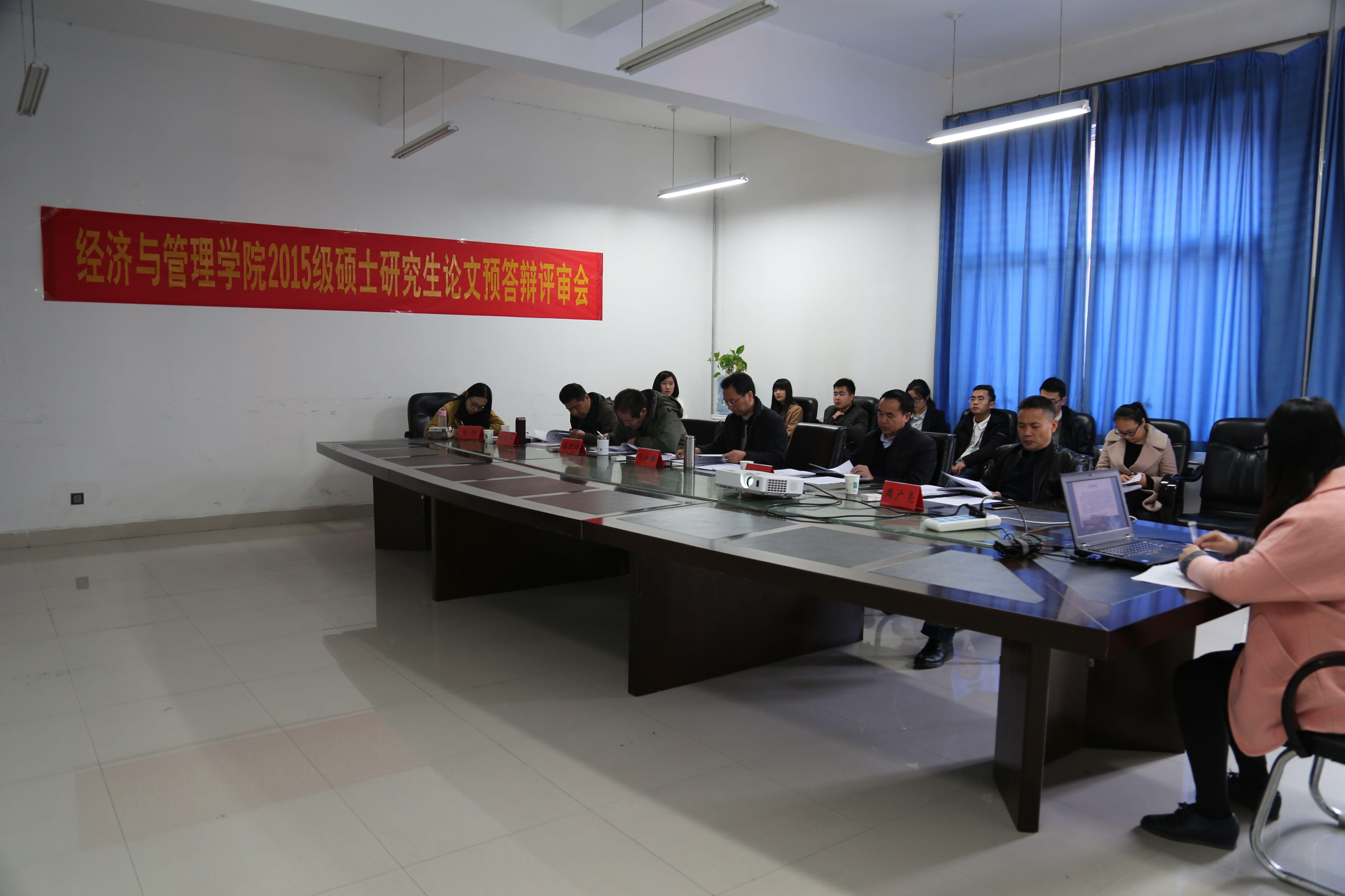 2018年3月22日上午,为了更好地完成研究生毕业论文答辩工作,确保毕业答辩的顺利完成,经济与管理学院2015级研究生毕业论文预答辩会在经管楼410教室举行,全体硕士指导老师与2015级11位研究生参加了此次答辩会,2016级部分研究生进行旁听。