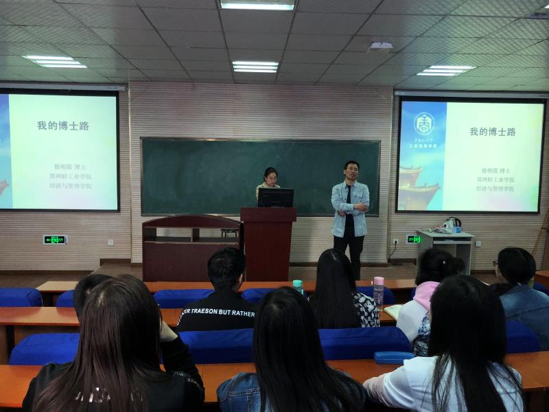 会议伊始,符院长向大家简单介绍了徐明霞博士及其突出的科研成果。座谈会正式开始,徐明霞博士先后从读博前期准备、读博生涯以及如何协调读博期间科研与生活三个方面介绍,生动细致,引来了在场听众的阵阵掌声。随后,徐博士就同学们提出的问题一一进行详细的解答,同学们纷纷表示受益匪浅。