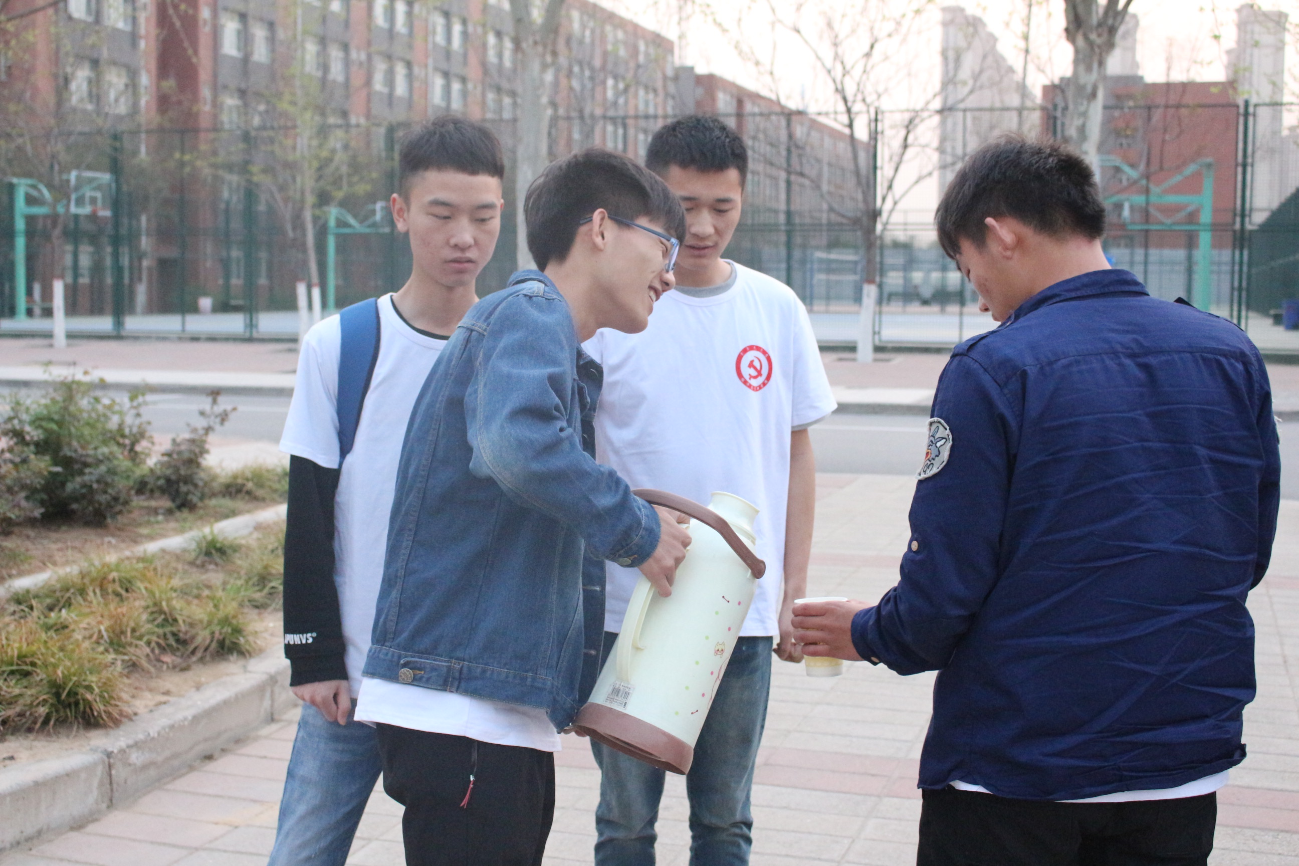 志愿者们于经管楼208室集合,集体徒步至学校南大门。志愿者们手提暖水瓶走向环卫工人集中分布的重点路段,在冷风瑟瑟中,几位环卫工人正在辛劳的清扫道路,一部分志愿者上前接过环卫叔叔和阿姨手中的工具,开始清扫;另一部分志愿者则为可爱的环卫工人们送上热水,接着志愿者和环卫工人们进行了短暂的交流,送上了对他们的问候和关心。通过此次活动使志愿者们明白了道路整洁的来之不易,更加了解了劳动的艰辛。