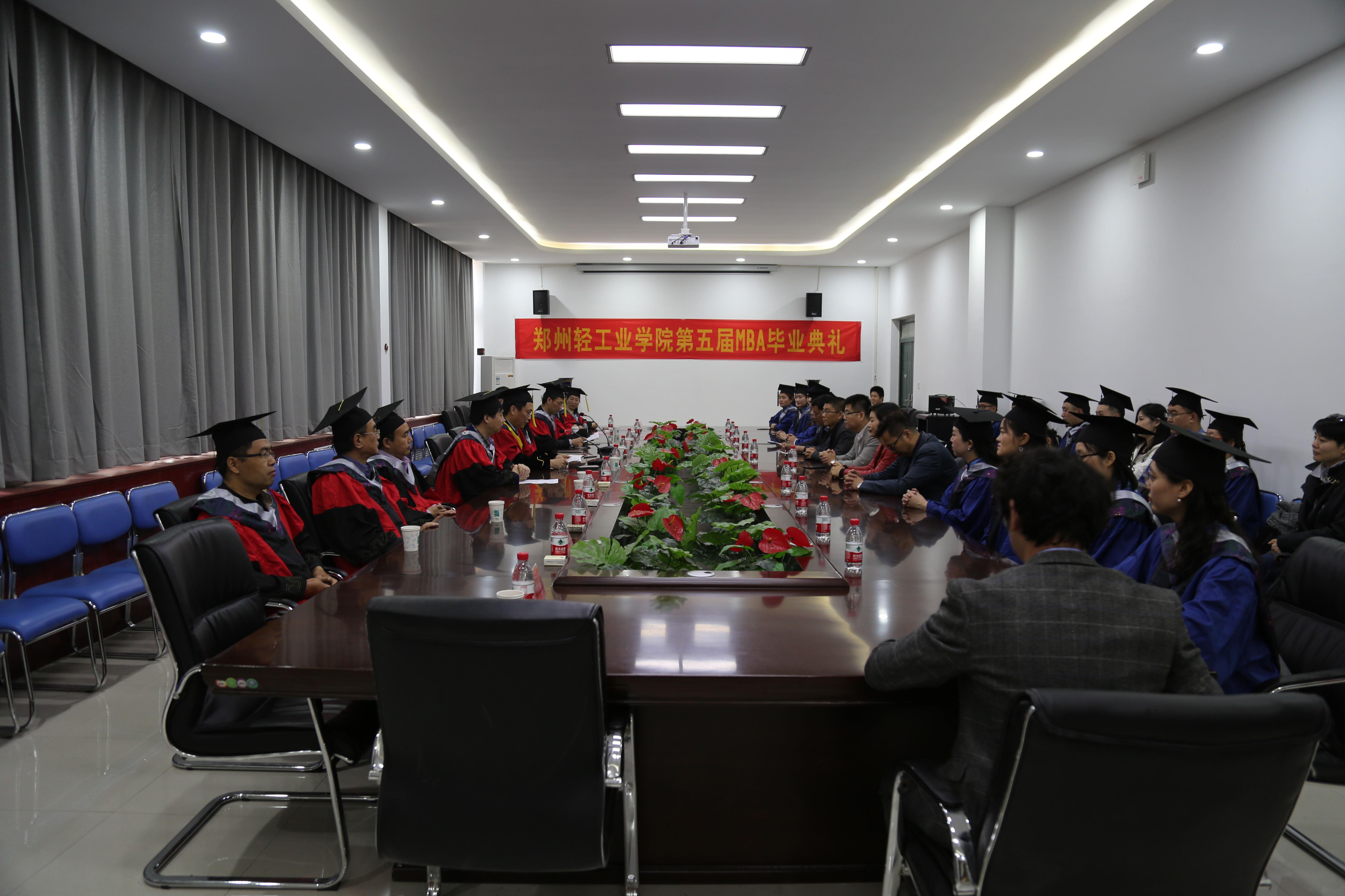 依依惜别母校,深深情留心间。2018年3月31日上午,在MBA教育中心工作人员的精心准备下,郑州轻工业学院第五届MBA学员毕业典礼在经管楼116隆重举行。副校长毛多斌教授、研究生处副处长段龙江、经济与管理学院院长刘珂教授、各位导师代表、15级全体MBA学员以及其他年级学员代表盛装参会。毕业典礼由经济与管理学院副院长符加林博士主持。