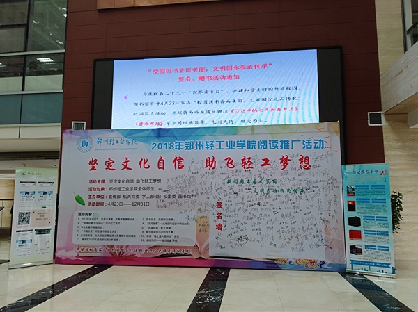 此次活动正式揭开了由宣传部、机关党委、学工部(处)、校团委、图书馆主办,以“坚定文化自信助飞轻工梦想”为主题的郑州轻工业学院2018年度阅读推广活动的序幕。此后将陆续开展图书阅读“微小说”创作大赛、轻图“线上真人图书馆”系列、盛唐风采——服饰品鉴讲座等内容丰富、形式多样的主题活动,吸引更多师生加入到阅读和品味经典的行列中,营造出书香四溢、悦读生活的校园文化氛围。