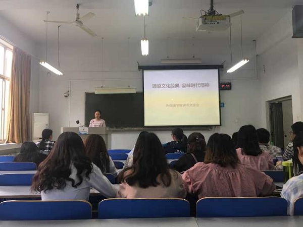 为激发同学们的读书热情,促进当代大学生对中国传统文化的深入了解,2018年5月10日下午,外国语学院在教三楼举办了“诵读文化经典 品味时代精神”读书交流会。2017级全体学生及学生党支部党员代表参加此次活动。