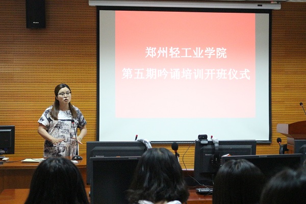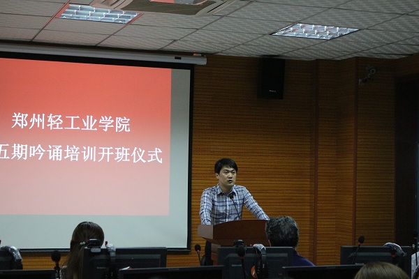5月10日下午,我校第五期诗词吟诵培训开班仪式在东二楼301室举行。河南省吟诵学会会长华锋、学会理事张宁、校党委宣传部副部长刘磊、校团委副书记景志勇出席活动,仪式由外国语学院党总支副书记孔祥娟主持。