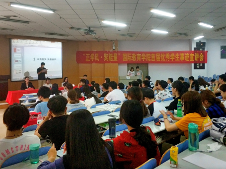 为深入学习贯彻习近平总书记考察北京大学重要讲话精神,创建优良学风,树立大学生学习楷模,国际教育学院于5月17日中午在教三楼103教室举办“正学风·聚能量”首届优秀学生事迹宣讲会。国际教育学院分团委书记张瑞凤老师、学工办副主任陈璐老师、部分辅导员老师、200余名学生参加了此次活动。
