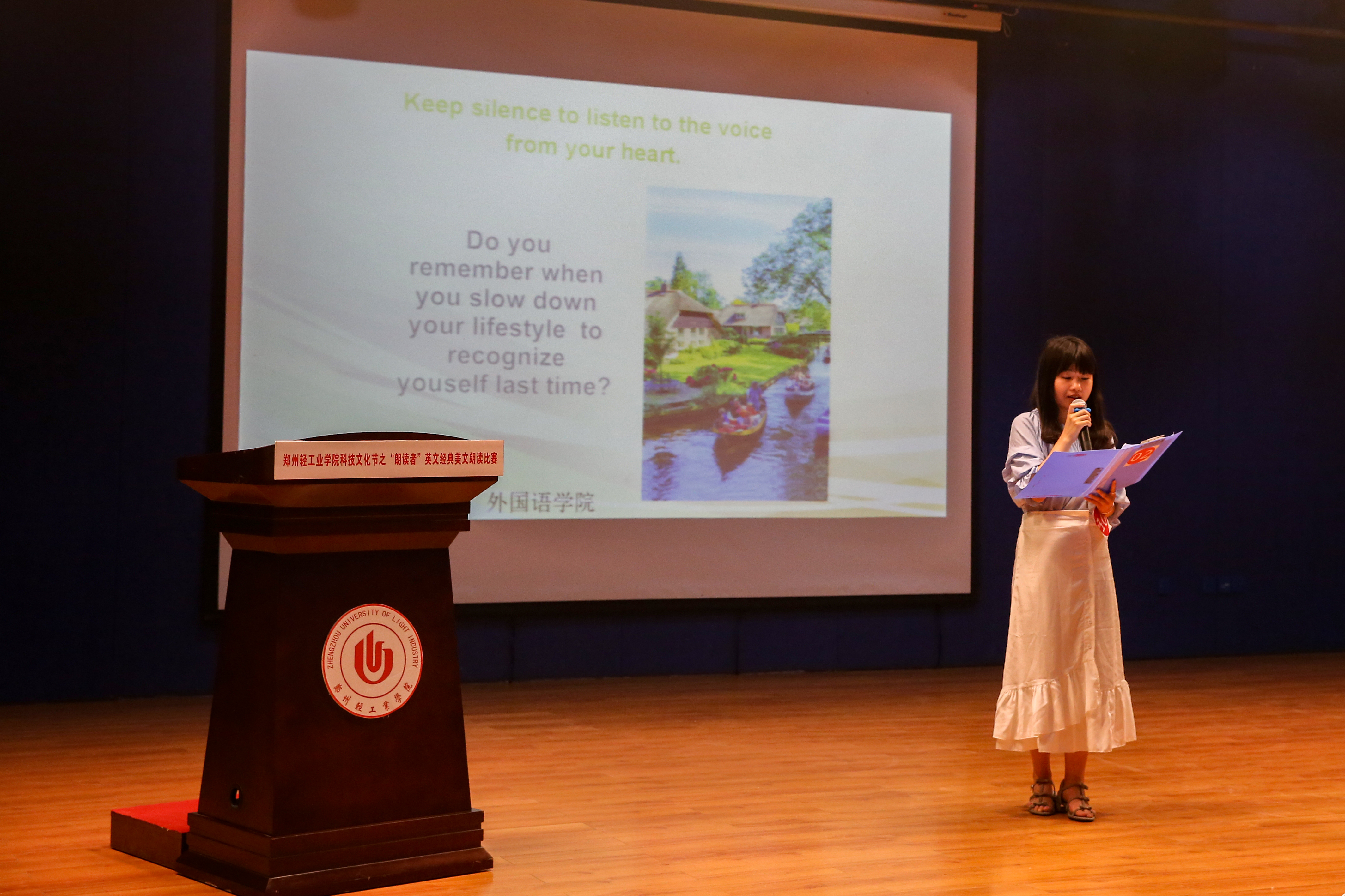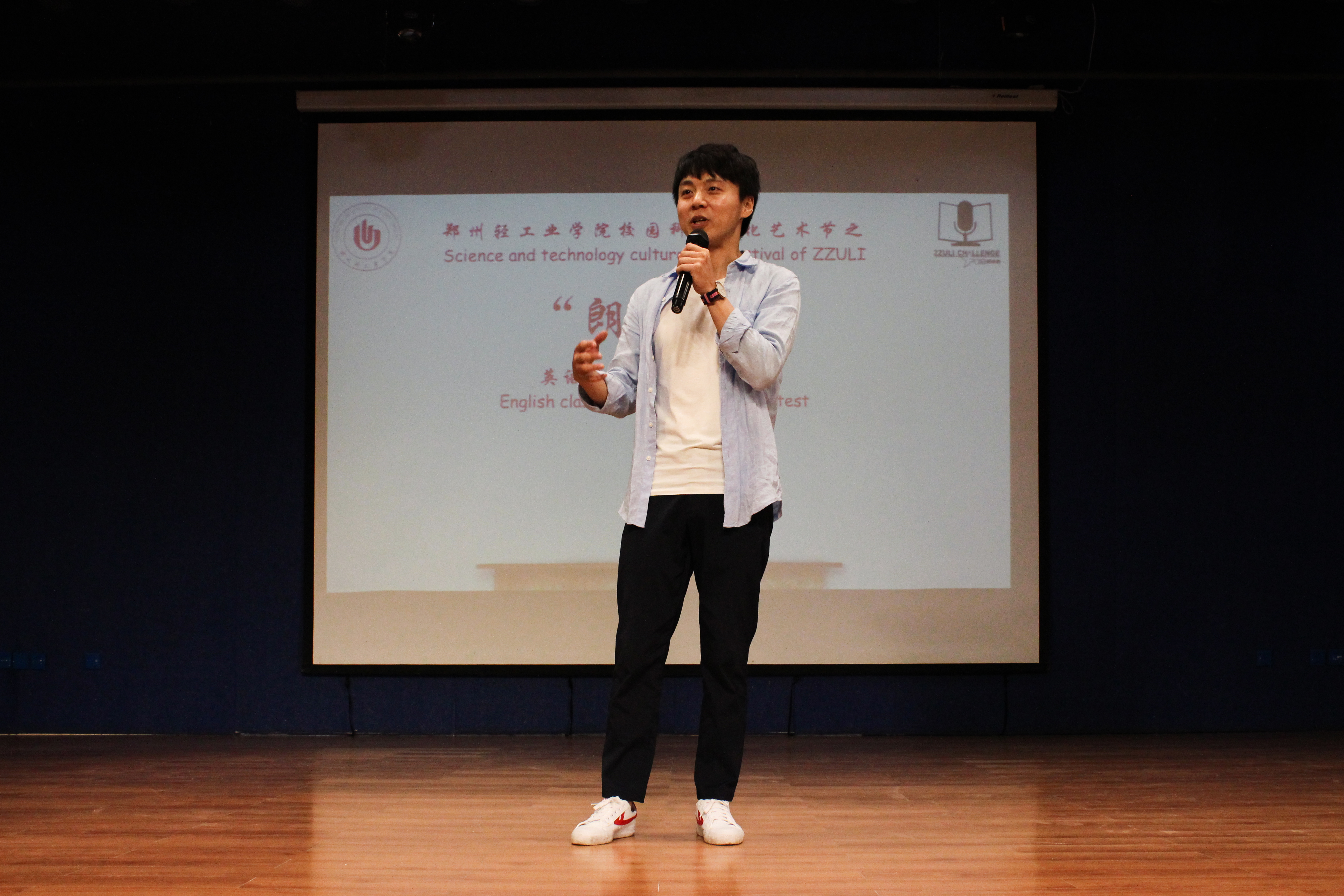 诵经典外文,品中西文化,由国际教育学院承办的郑州轻工业学院第25届校园科技文化艺术节之“朗读者”英语美文朗读比赛全校总决赛于5月16日晚7:30,在教一楼107成功举办。国际教育学院外教Beth、卢红羽、马珺文、王琳琳、邢媛媛和刘畅老师担任此次比赛的评委,国际教育学院分团委书记张瑞凤老师、栗想老师、阮晟桓老师作为嘉宾出席了本次活动。