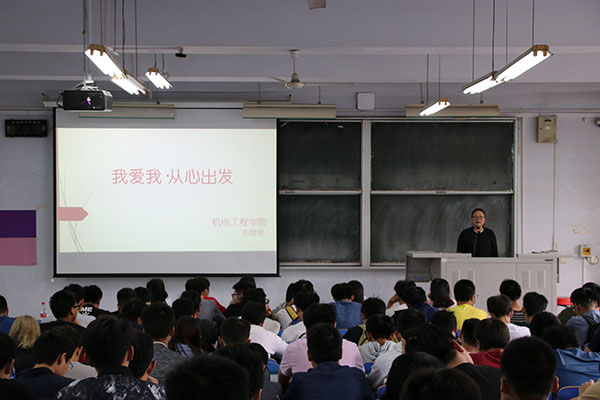 为进一步提升大学生心理健康意识,增进同学们的人际交往能力,2018年5月22日下午,机电工程学院在东风校区东一楼200举办了以“我爱我·从心出发”为主题的心理健康班会,本次班会由机电工程学院心理健康专职辅导员徐老师主讲,2017级各班心理委员和班级学生代表参加了此次班会。