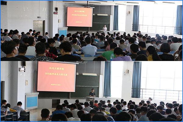 为促进毕业生文明离校工作的顺利开展,进一步指导学生办理离校手续,2018年5月28日上午,机电工程学院在教三楼202教室召开2018届毕业生大会,我院负责就业老师、毕业班辅导员和2018届毕业生参加此次大会。