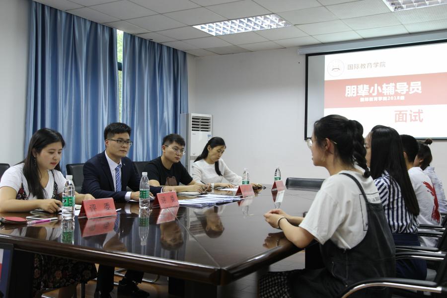为帮助我院2018级新生迅速适应大学生活,充分发挥优秀学生群体的标杆作用,国际教育学院于2018年5月29日中午在教二楼313会议室举行“2018级朋辈小辅导员”面试,我院各年级辅导员代表担任评委。