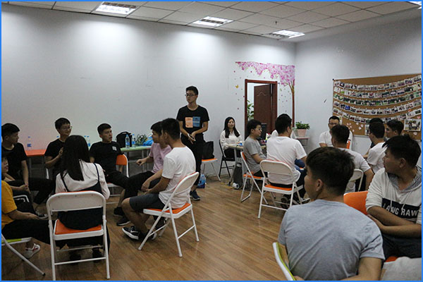 此活动主要包括“大树、松鼠、地震啦”、“心有灵犀”、“一元五角”、“瞎子和聋子”等,尤其是在“大树、松鼠、地震啦”活动环节,同学们通过扮演不同的角色,赋予不同角色所对应的行为反应,在外在环境不断变化中,致使“大树”和“松鼠”都面临着脱离“群体”的危机,所以他们都要想尽一切办法,归属团体。在这一游戏过程中,同学们“归属”的需要得到放大体现,促进了人与人之间的交流和合作,使每位同学深刻体验到“团队精神”的重要性。现场气氛高潮层出,气氛融洽,同学们热情高涨。