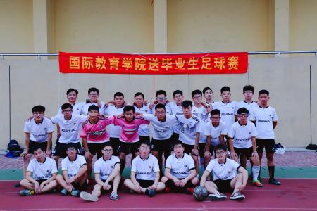 在2018届毕业生即将离校之际,为增进毕业生对母校的深厚感情,传递对毕业生的美好祝福,共同营造文明离校的氛围,国际教育学院于6月8日下午在东风校区体育场举行送毕业生足球赛。
