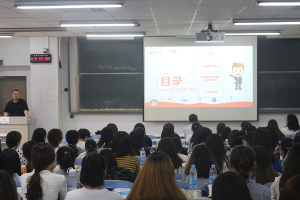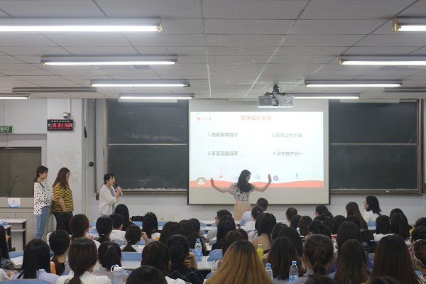 活动邀请布衣鸿儒(北京)教育科技有限公司特聘讲师陈雷、实训总监张紫楠和总经理赵俊三位老师授课。培训采用实操训练和实务讲解相结合的方式,讲授中小学语言教育教学新理念和课堂组织新方法。培训课程体系完善,内容包括动感韵律课堂、童话剧教学、魔力教态操及课堂用语和英语语音教学等五个板块。在培训中,老师们还通过课堂模拟的形式进行了教学演示,在实操中讲解课程把控技巧、趣味课堂组织和课程设计等理念和方法。精彩的演讲和教学观摩,有效增强了同学们的语言教学技能。
