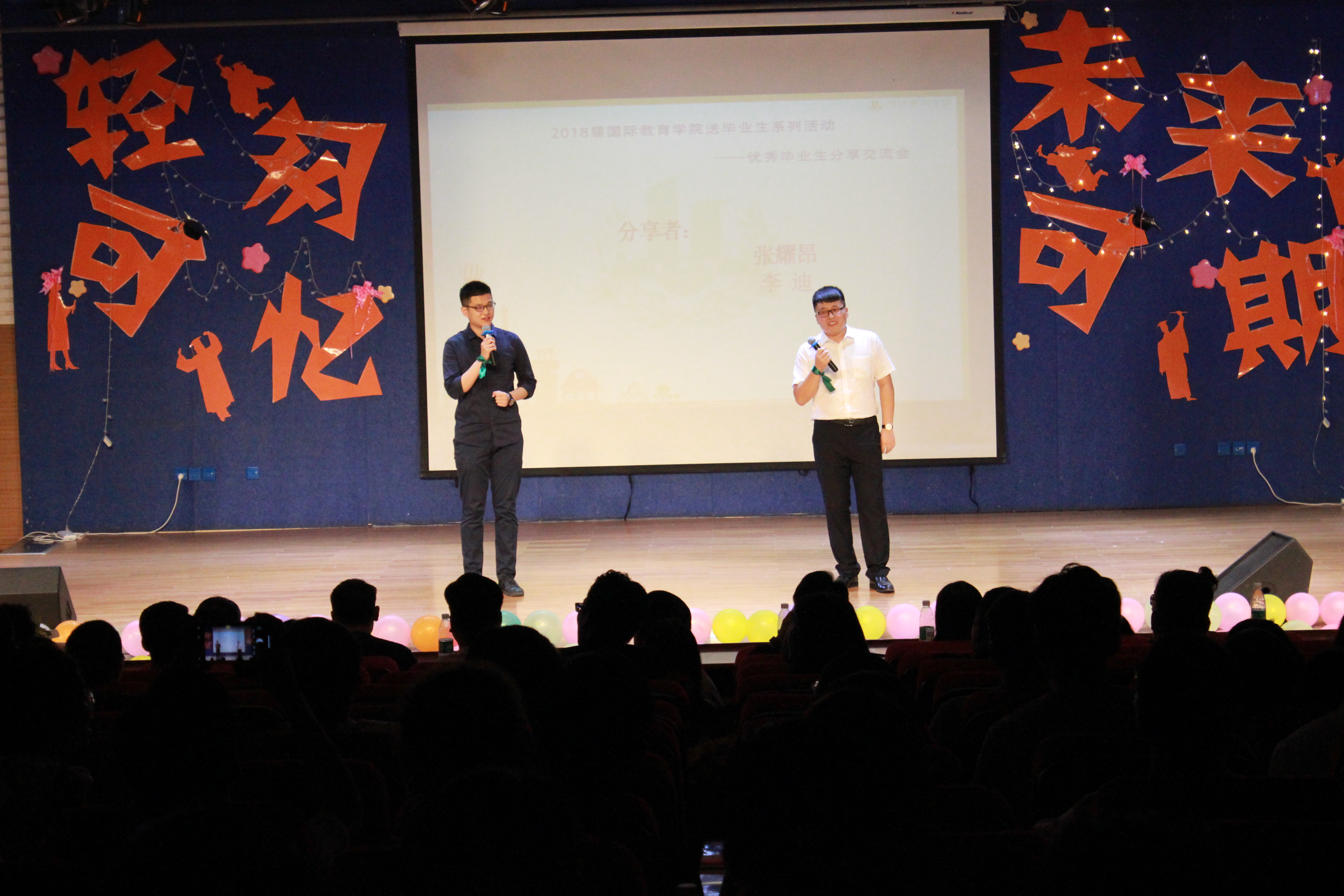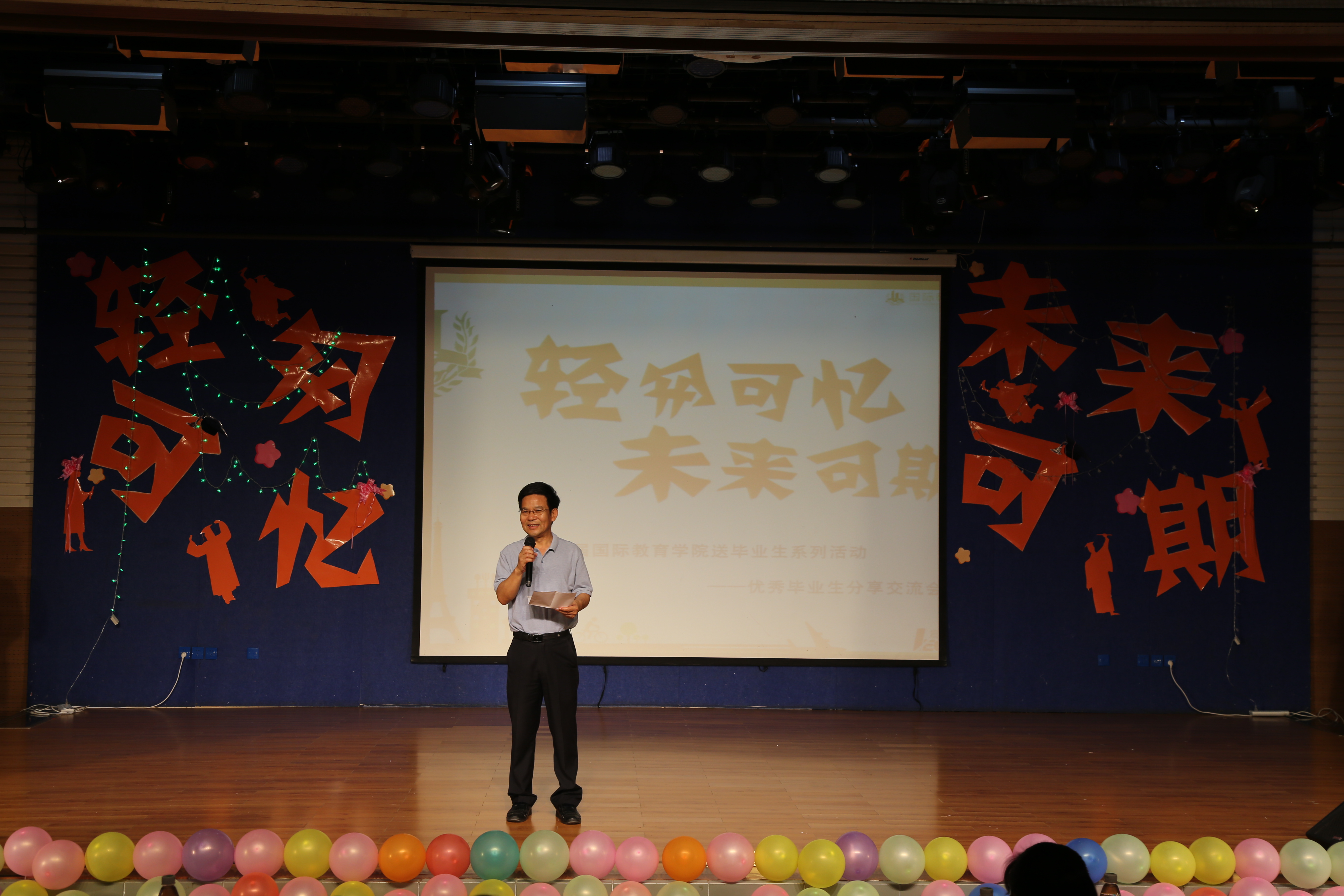 随后,优秀毕业生经验分享会正式举行。国际教育学院党总支书记戚俊清送上对同学们的嘱托,祝福同学们毕业顺利,前程似锦,同时对毕业生们提出建议:转变心态,尽快适应社会;不放弃求知的欲望,不抛弃理想的追求;诚信做人,踏实做事。之后,优秀毕业生代表依次上台发言并与台下学生互动问答。他们从专业学习如何充分提高课堂效率、如何锻炼专业技能;如何做到尊重、礼貌、传承养成良好学习生活习惯;如果打造核心竞争力、提高学生干部服务水平和工作能力等方面分享了自己的经验和体会。本次分享会,往届毕业生也应邀参加,他们分享了自己初入职场的感受,告诉学弟学妹们一定要珍惜大学时光,多多沉淀,这样机会来临时才有能力抓住。一封封毕业生家长的来信,亲临家长与毕业生的深情相拥,学院老师、园区老师、餐厅阿姨们的真情祝福,一个个片段串联起最难忘的大学四年,师恩难忘,情谊难舍。最后,分享会在全场老师和同学们合唱的《同桌的你》中落下帷幕。