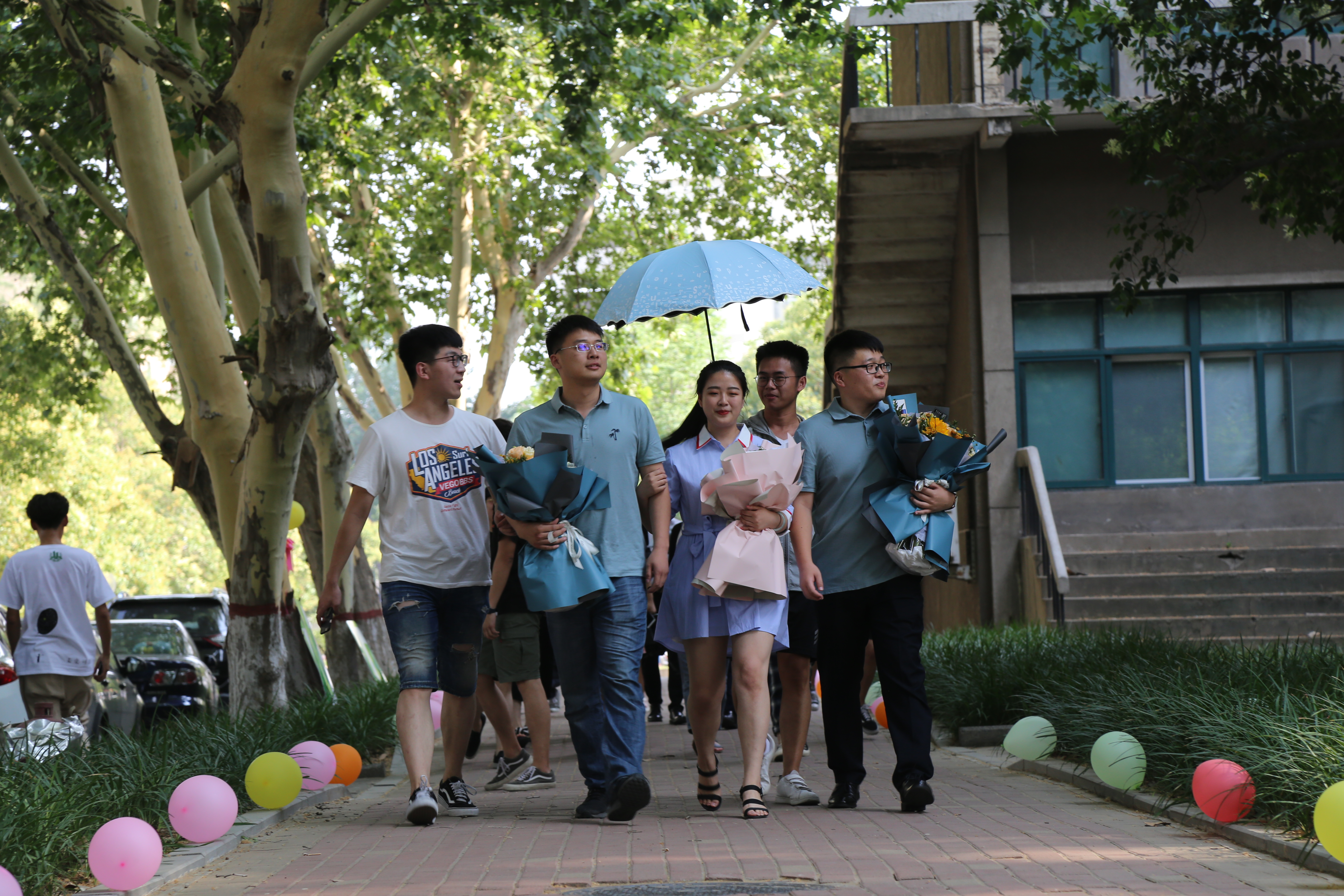 纪念活动在毕业生代表学院门前的“最后一次班会”中拉开帷幕,他们漫步在教二楼下的绿荫小道,重温大学四年青春之路,参与丝带纪念、签名墙等温馨活动,并在毕业纪念衫上写下了自己对大学最后的祝愿,诉说了对学校、老师、学弟学妹和自己大学四年时光的不舍之情。学弟学妹们将自己对即将毕业的哥哥姐姐们的祝福装入漂流瓶中作为最后的礼物,将纪念活动带入高潮。
