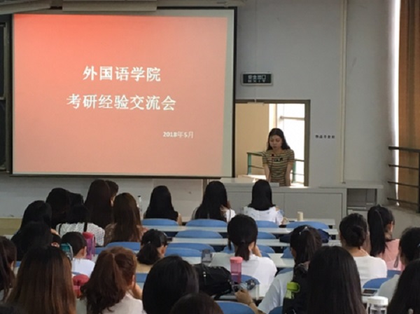 6月20日下午,外国语学院在教三楼200教室举办考研经验交流会。2014级考研优秀学生代表与低年级学生进行交流。