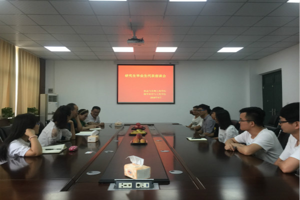 6月20日下午3点召开的研究生毕业生代表座谈会,学院副院长刘延奇、研究生辅导员张陆燕和研究生毕业生代表出席。刘院长首先祝贺同学们都有好的发展前途,希望大家在未来的学习和工作中注意细节,养成及时总结的好习惯,鼓励大家积极努力,开拓进取,并建议大家在座谈会上畅所欲言,为学院的教学和日常工作提出宝贵意见和建议。硕士毕业生代表们对学校和导师多年来的教育和培养表示敬意和感谢。大家围绕学科设置、学术交流、科研活动以及研究生生活发表了自己的意见。学院领导和老师认真记录了同学们反映的问题和情况,并对大家普遍关注的问题进行了积极的回应和探讨,最后祝愿毕业生一路顺风、前程似锦。