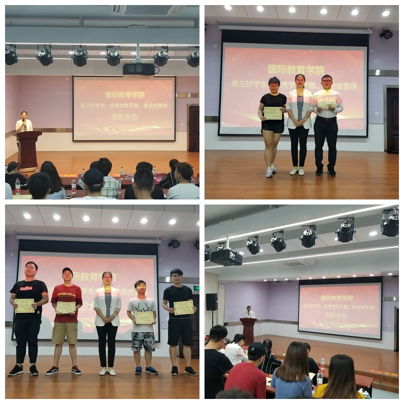 为深入落实高校立德树人的根本任务,展示当代大学生积极进取、奋发向上的精神风貌,在广大学生当中树立典型模范,国际教育学院于6月21日中午在教二楼东一阶召开2018年河南省普通高等学校三好学生、优秀学生干部和先进班集体表彰大会。国际教育学院党总支副书记李锐杰老师、分团委书记张瑞凤老师、学工办主任陈璐老师、部分辅导员以及全体受表彰同学和各年级学生代表参加了本次大会。