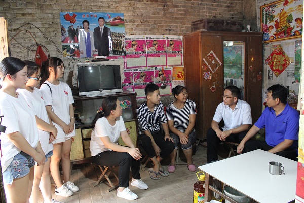 7月15日,外国语学院党总支书记杜红亮、副书记孔祥娟和分团委书记刘振卫组队赴台前县清东村与结对农户精准帮扶。