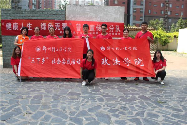 为切实加强全国禁毒宣传力度,普及禁毒知识,提高广大人民群众禁毒意识,筑起反毒、防毒、拒毒的铜墙铁壁;为强化社会抗御毒品的能力,进一步提升群众毒品安全意识和自防自救能力,营造良好的安全环境,同时增强大学生的社会责任感,7月16日至20日,政法学院“绿色保护伞”禁毒防艾宣传小分队联合郑州市禁毒办、高新区疾控中心深入郑州市国棉三厂家属院、郑工社区、隆福国际社区、正商恒钻社区等多个社区开展了为期五天的暑期社会实践活动,为社区居民普及了禁毒防艾知识。