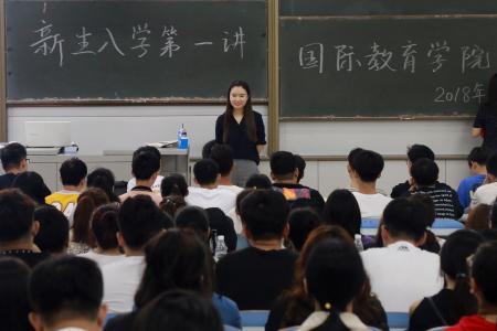 为指导和帮助新生尽快适应新环境、树立爱校荣校的意识、顺利完成角色过渡、科学规划学习生活,9月6日,国际教育学院分专业开展“新生第一讲”。学院全体新生辅导员和900余名新生参加了此次活动。