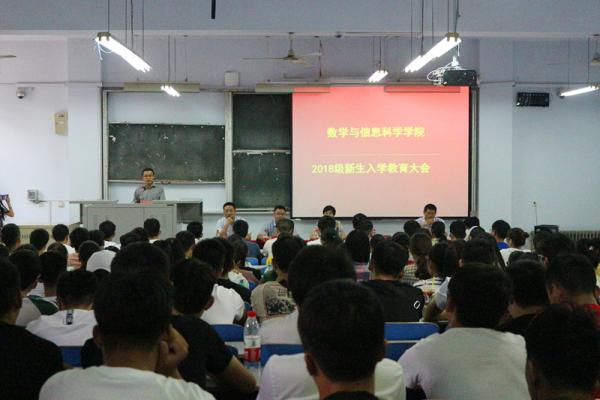 9月10日下午15:00,数学与信息科学学院在东一楼218教室举行2018级本科新生开学典礼暨入学教育大会。数学与信息科学学院党政领导、系主任、教师代表、分团委负责人及各年级辅导员出席了会议。大会由党总支副书记张阳主持。