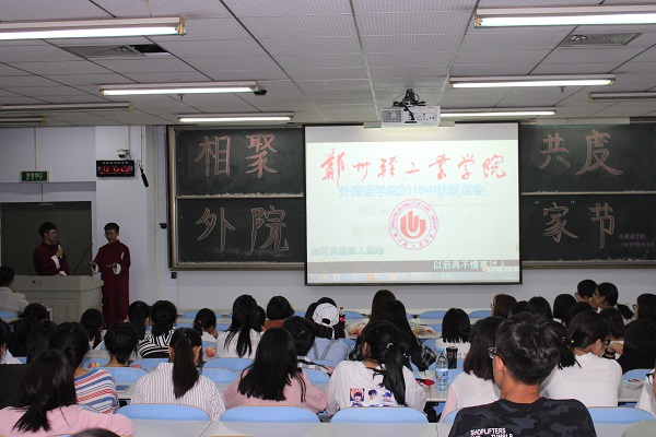 9月23日晚,外国语学院在教三楼104教室举行迎新生中秋联欢会。分团委刘振卫老师、高年级同学与18级新生欢歌笑语,共度中秋佳节。