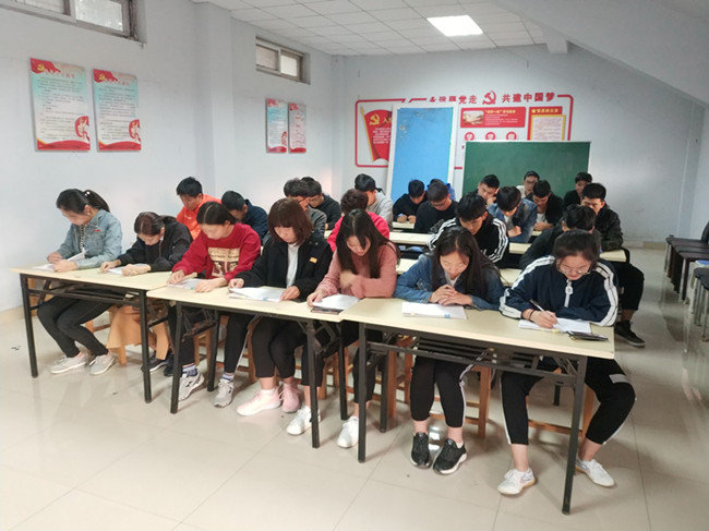 每周周一、周四早上,同学们在学院学生活动中心进行早自习,俗话说“一年之计在于春,一天之计在于晨”,背单词、预习专业课理论知识;每周周一、周二的晚上,同学们走进自习室,对一天所学的知识进行梳理和查漏补缺。同学们互相监督,在专业技能学习的同时,也不忘记理论知识的学习。