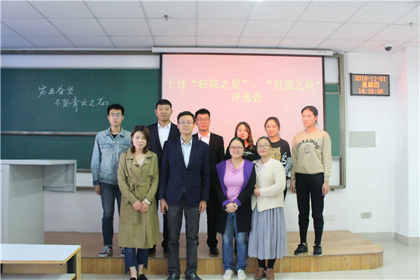 为鼓励学生发展、树立先进典型,增强对同学们的榜样教育激励作用,政法学院于11月1日中午13:00点在二教楼802举办了2018年十佳“轻院之星”和 “自强之星”评选活动,政法学院党总支副书记金亮和全体辅导员老师出席了本次活动。