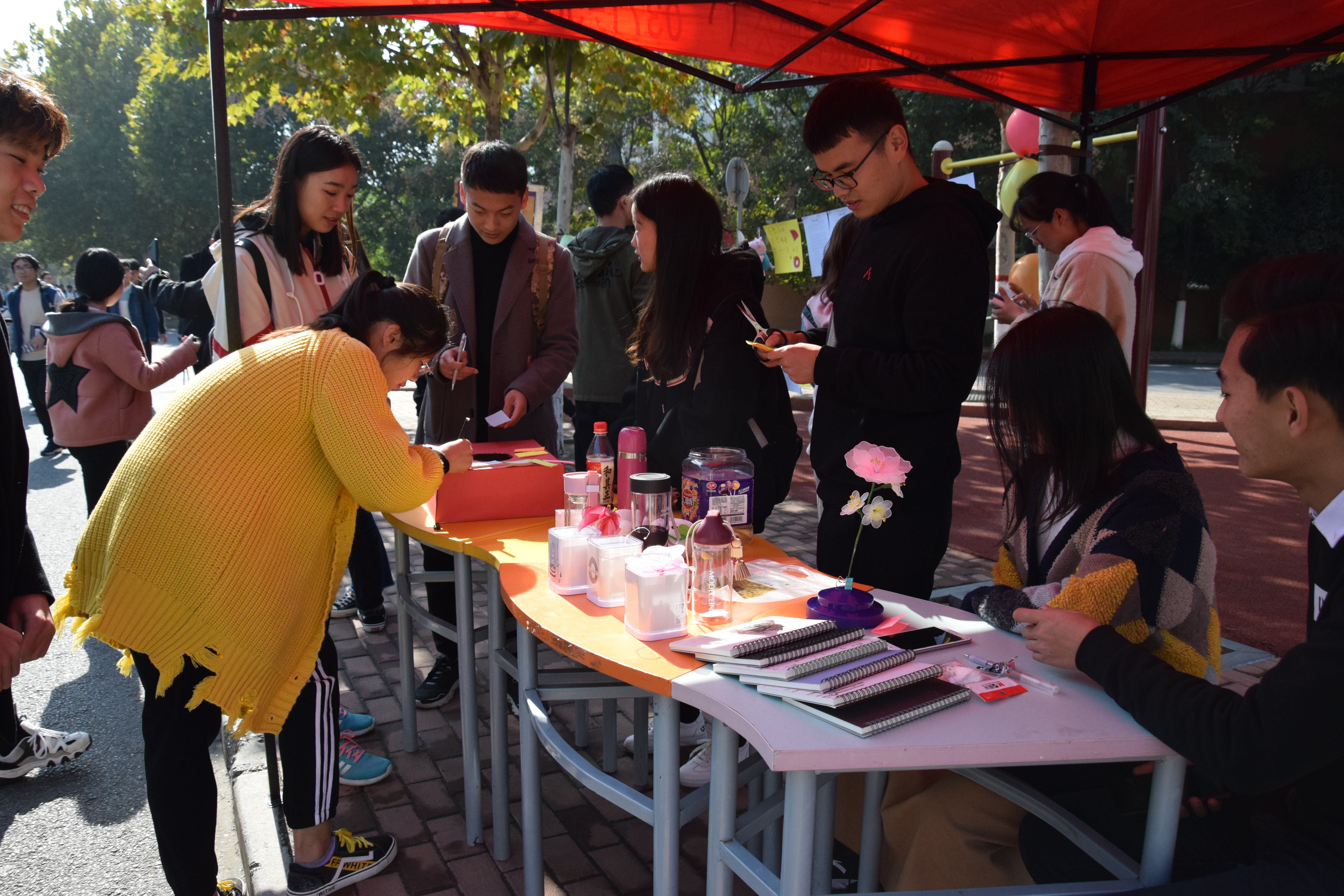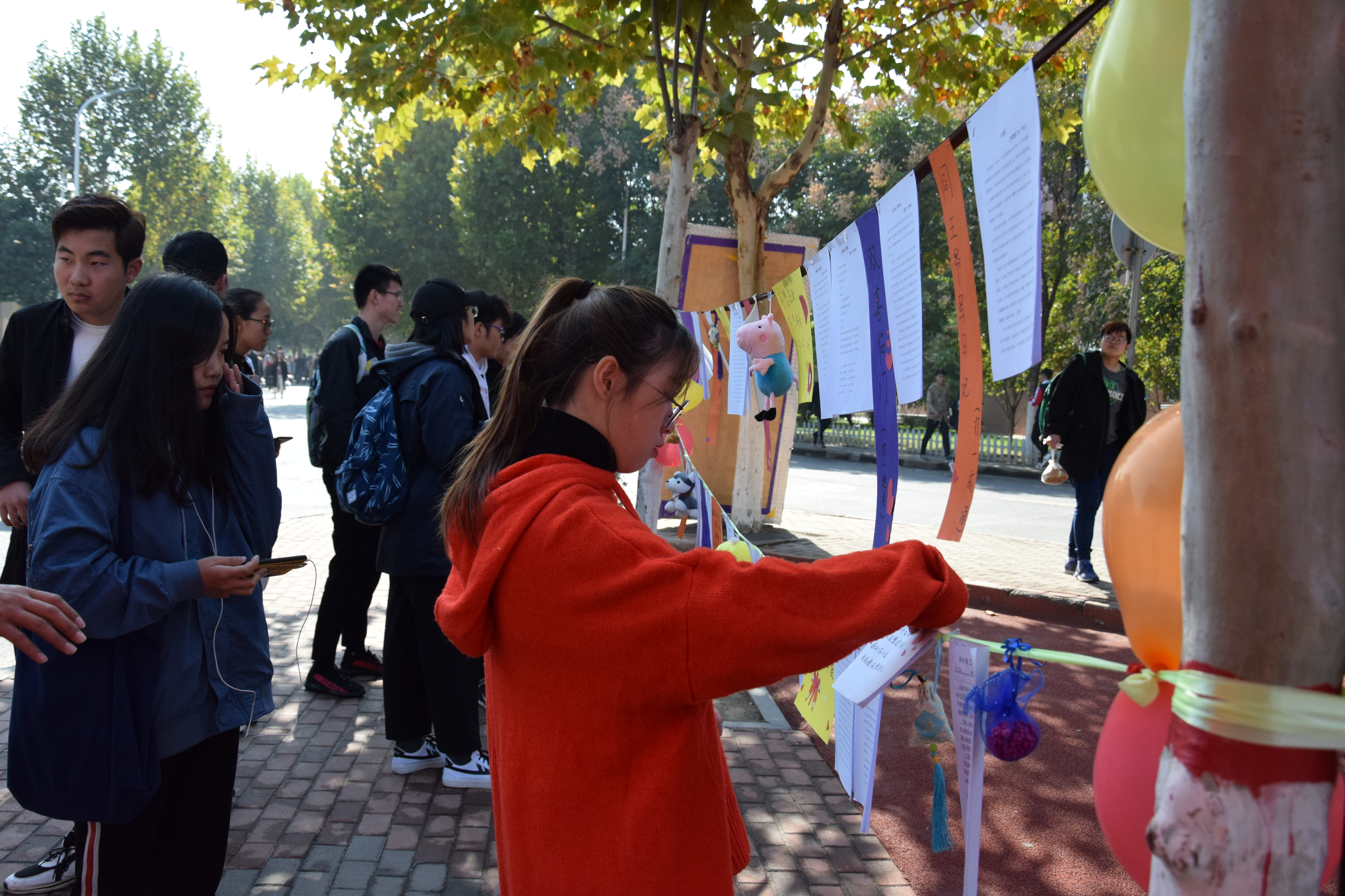 本次活动自10月下旬开始筹办,从前期的征稿、初评到最后的展出,历经三周时间。在此过程中,我院广大同学广泛支持、积极参与。11月9日-13日将入围的21份优秀作品展出,以公开投票的方式最终于11月14日评选出14份作为获奖作品。9日上午,相关工作人员搭建好展示帐篷,通过牵引丝带展示优秀征文作品,同时在作品旁粘贴了各样的谜语及爱心话语丰富活动内容。活动现场同学们热情满满,纷纷驻足欣赏作品、猜谜语、投票等,同时另有小礼品赠送,以感谢他们的积极参与。最后综合现场投票及文章内容,物流管理1801班的华晨旭同学所写的《青春不朽,未来已来》获得本次征文大赛的一等奖。