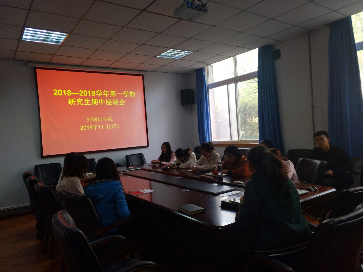 11月23日下午,外国语学院在东二楼306召开2018-2019学年第一学期研究生期中座谈会。座谈会由边铀铀副院长主持,外国语学院全体硕士研究生参加。