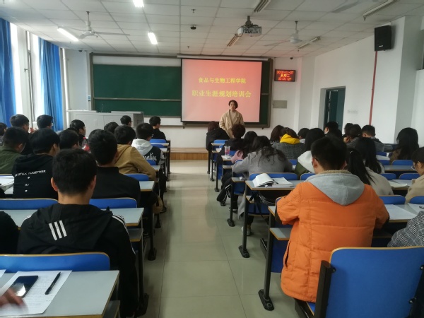 为了让同学们消除进入大学的迷惘,对自己未来的职业生涯有一个准确的定位和规划,食品与生物工程学院于11月27日在二教楼812举办了职业生涯规划培训会。我院分团委书记王楠老师、去年我院职业生涯规划大赛优秀选手、2017和2018级部分同学参加了此次培训。