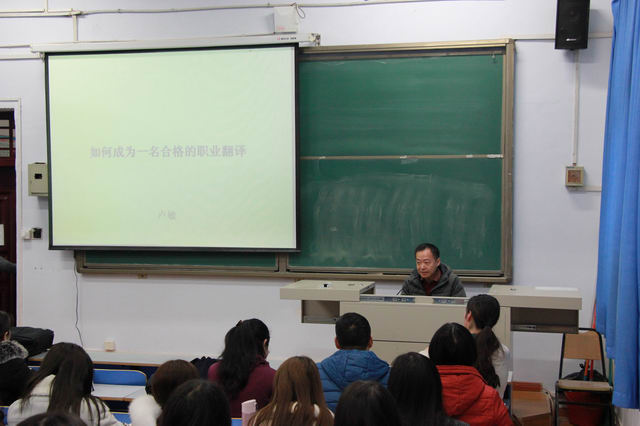1222日上午,应外国语学院邀请,中国外文局华语教学出版社卢敏译审在东风校区东二楼100教室作了题为“如何成为一名合格的职业翻译”的学术报告,外国语学院领导、相关专业教师、研究生及本科生参加了报告会,报告会由陈文凯院长主持。