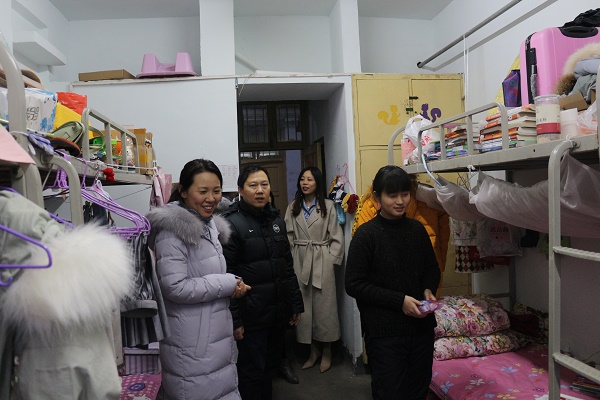 1月9日下午,外国语学院党总支书记王伟、副书记孔祥娟及全体辅导员走访学生宿舍,了解学生学习生活情况,排查安全隐患,强化宿舍文化建设。