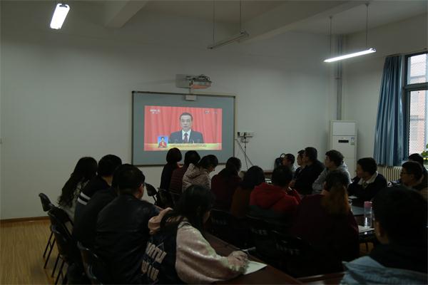 全体师生聚精会神,认真聆听大会报告,悉心领会大会精神。通过观看本次直播,我院师生及时了解到2018年中国取得的成绩、2019年经济社会发展总体要求和政策取向、2019年政府工作任务。师生纷纷表示为2018年中国取得的成绩感到骄傲和自豪,对2019年中国的发展充满了信心和期待。广大师生将在两会精神的感召下,勤奋工作、潜心研究、刻苦学习,为迎接新中国七十华诞,为实现中华民族伟大复兴的中国梦努力奋斗。