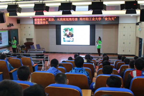 为大力弘扬雷锋精神,引导和激励广大青少年积极践行社会主义核心价值观,在无私奉献中体现作为、感悟成长,食品与生物工程学院(烟草科学与工程学院)“食为天”志愿服务队于2019年3月14日前往华中师范大学万科附属小学开展以“雷锋精神广宣扬,从我做起展形象”为主题的志愿服务活动。
