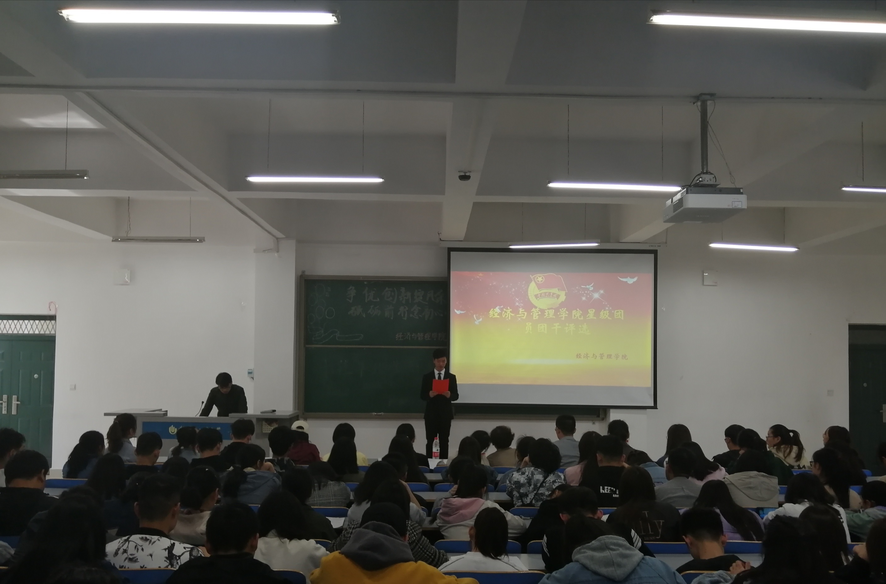为全面推进从严治团要求,让团的基层组织更加充满活力,经济与管理学院于2019年3月25日在经管楼309开展以“争优创先绽风采 砥砺前行念初心”为主题的团干部评星争优、团员评星创先活动。经管学院全体专职辅导员、各班学生代表参加了本次活动。
