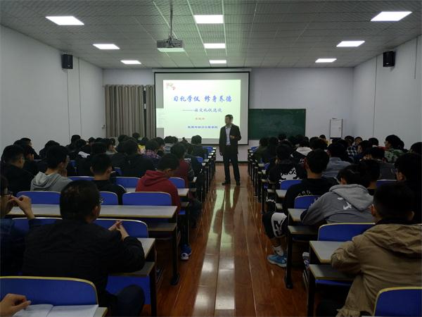 4月8日晚19点,能源与动力工程学院在禹州实习实训基地1号实训楼407开展了文明礼仪教育活动,能源与动力工程学院党总支副书记李俊丰老师为能源与动力工程学院2017级全体同学作了题为“习礼学仪•修身养德”的讲座。