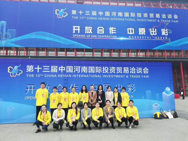 4月8日上午,由河南省人民政府、商务部、中国国际贸易促进委员会、中国人民对外友好协会联合主办,以“开放合作、中原出彩”为主题的第十三届中国河南国际投资贸易洽谈会在郑州国际会展中心轩辕堂隆重开幕。我校外国语学院朝鲜语系教师、2018级朝鲜语翻译硕士和2015级朝鲜语专业本科生代表共20人担任现场一对一洽谈翻译。