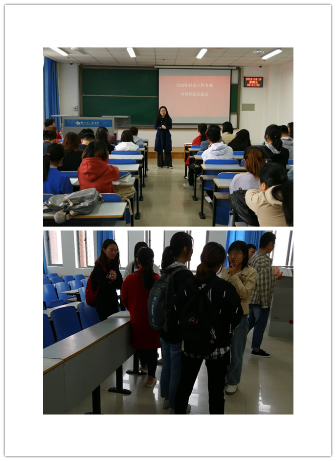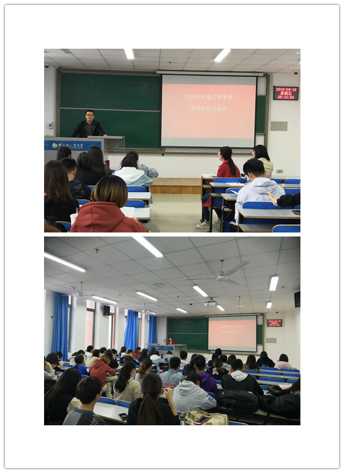 4月19日上午8:00,政法学院社会工作专业于二教802召开了社会工作专业考研经验交流会。社工专业教研室主任徐京波老师、社工专业李慧老师和2019年顺利考入国内重点大学研究生的部分学生代表,社会工作16、18级学生参加了此次考研经验交流会。
